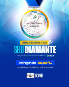 A Câmara Municipal de Sumé alcançou um marco histórico ao conquistar o Selo Diamante no Programa Nacional de Transparência Pública da Atricon, atingindo 95,85% de conformidade. Com esse desempenho, o Poder Legislativo sumeense obteve a melhor nota da Paraíba, superando inclusive órgãos estaduais e municipais avaliados no estado.