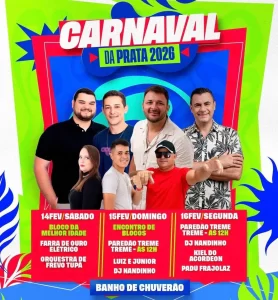 Carnaval de Prata 2026 será realizado de 14 a 16 de fevereiro com programação especial