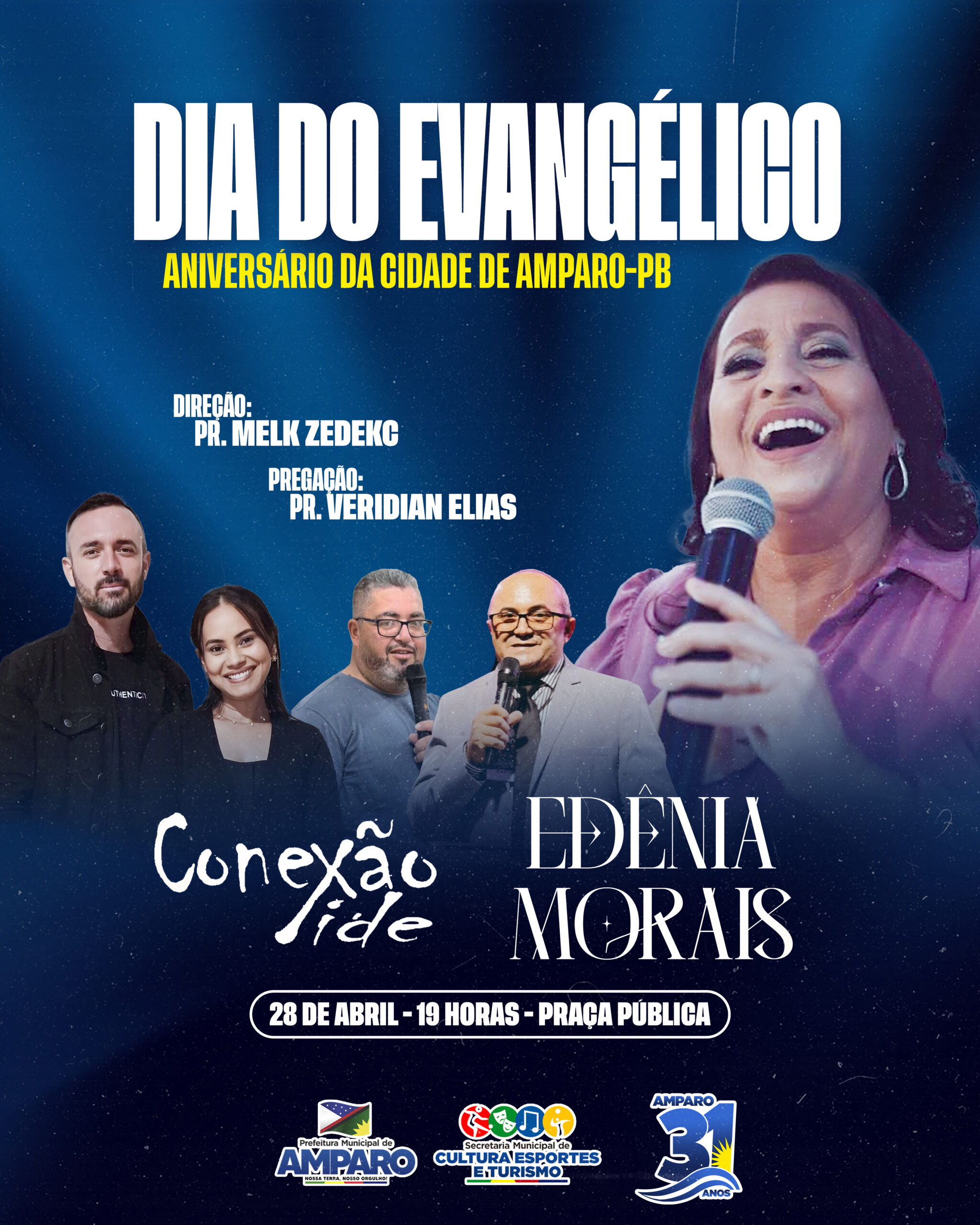 O Dia do Evangélico estará dentro da programação, sendo comemorado no dia 28 de abril, onde será realizado um culto a partir das 19h com a direção do Pastor Melk Zedekc, a pregação com o pastor Veridian Elias e shows com Conexão Ide e Edênia Morais.