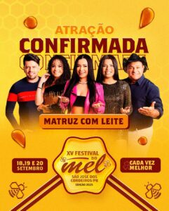 A Prefeitura de São José dos Cordeiros anunciou oficialmente a primeira atração da XV edição do Festival do Mel, que acontecerá em Setembro de 2025. Para abrir a programação de shows, a banda Mastruz com Leite, um dos maiores nomes do forró nordestino, está confirmada e promete animar o público com grandes sucessos que marcaram gerações.