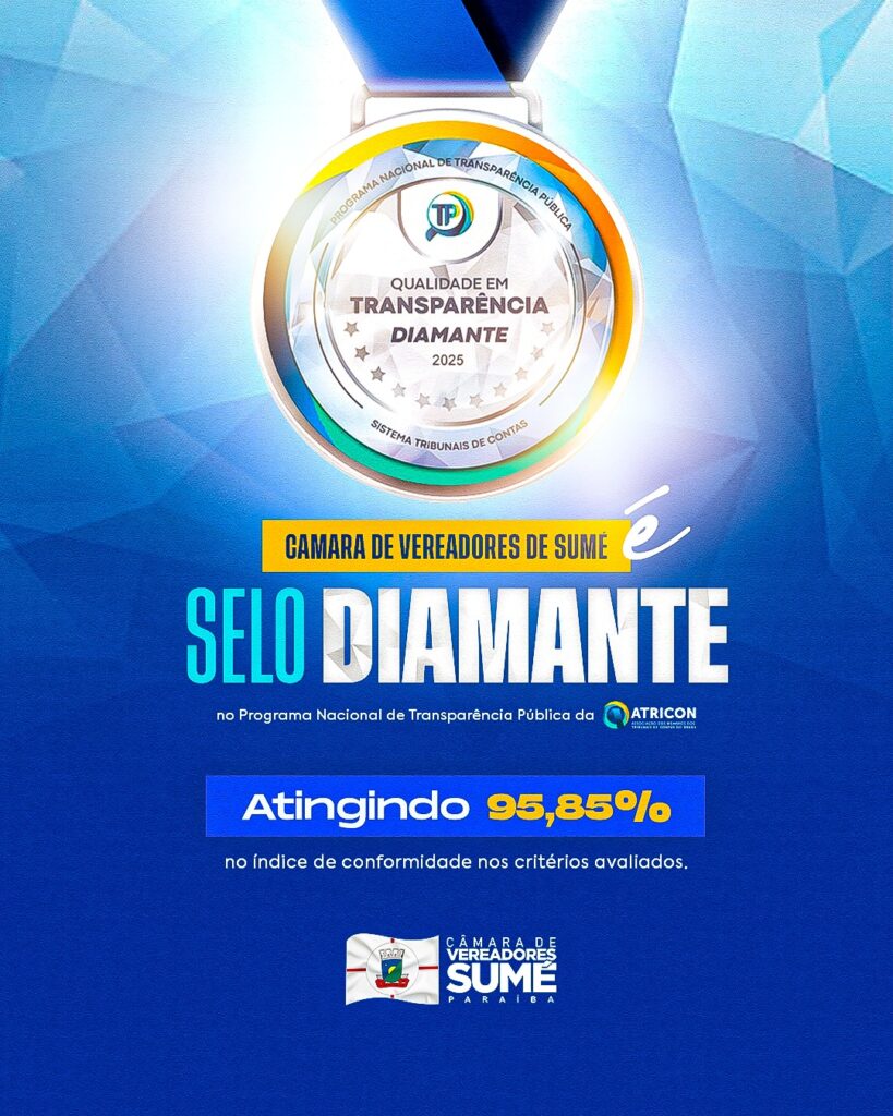 A Câmara Municipal de Sumé alcançou um marco histórico ao conquistar o Selo Diamante no Programa Nacional de Transparência Pública da Atricon, atingindo 95,85% de conformidade. Com esse desempenho, o Poder Legislativo sumeense obteve a melhor nota da Paraíba, superando inclusive órgãos estaduais e municipais avaliados no estado. Um dos destaques da conquista foi o […]