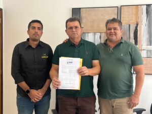 Durante a reunião, o prefeito assinou a autorização para o funcionamento da empresa em Sumé, etapa necessária para o início dos trabalhos, e também foram discutidos detalhes técnicos sobre a execução da obra.