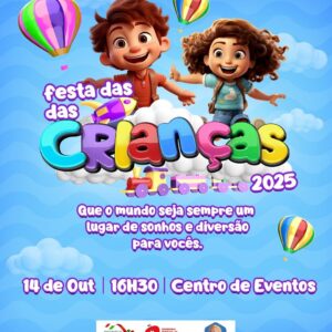 Nesta terça-feira, 14 de outubro, a Prefeitura de São José dos Cordeiros, por meio da Secretaria de Desenvolvimento e Assistência Social, realiza a tradicional Festa das Crianças 2025, a partir das 16h30, no Centro de Eventos do município. A celebração promete uma tarde repleta de alegria, diversão e momentos especiais para os pequenos e suas famílias.